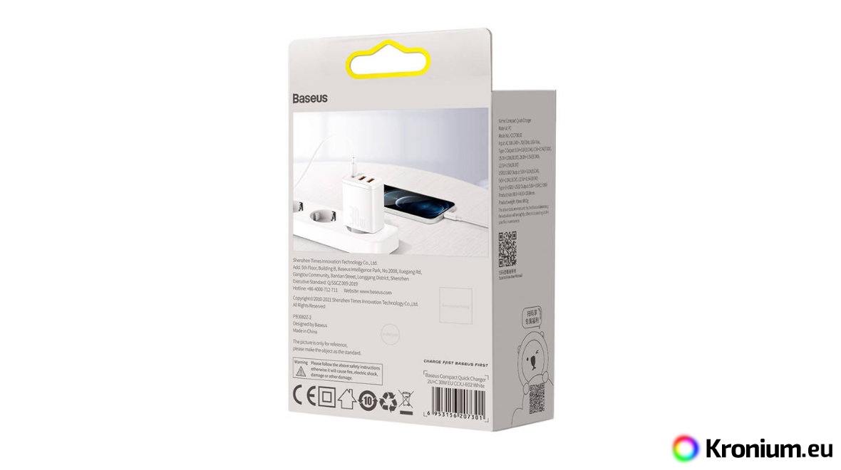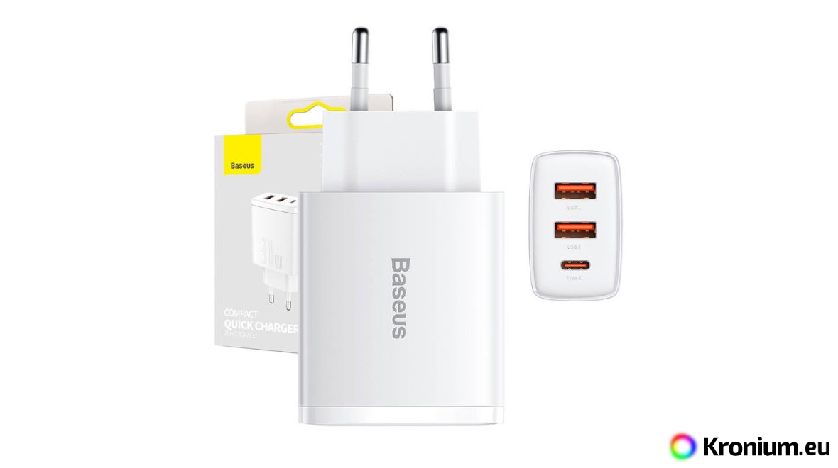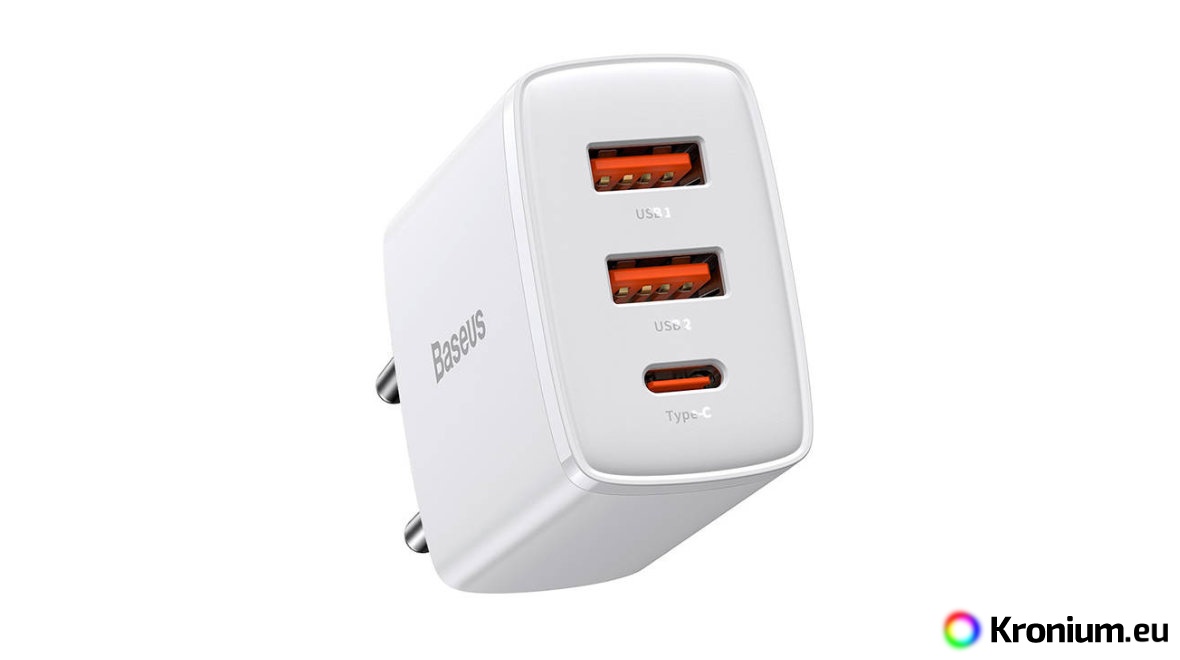 The Baseus CCXJ-E02 is a high-performance USB adapter for powering up to three USB devices from the mains, providing a total power output of up to 30 W. The adapter features two USB-A ports with a max. output of 18 W and one USB-C port with a max. output of 30 W. It supports both standard 5 V USB devices and devices compatible with fast charging protocols PD3.0, QC3.0, QC2.0, AFC, Apple2.4, and BC1.2. The adapter is therefore particularly suitable for fast charging Fenix LR80R, LR60R, LR50R, LR40R V2.0, LR35R, LR35R PRO, PD36R PRO flashlights, mobile phones, power banks, and other devices.