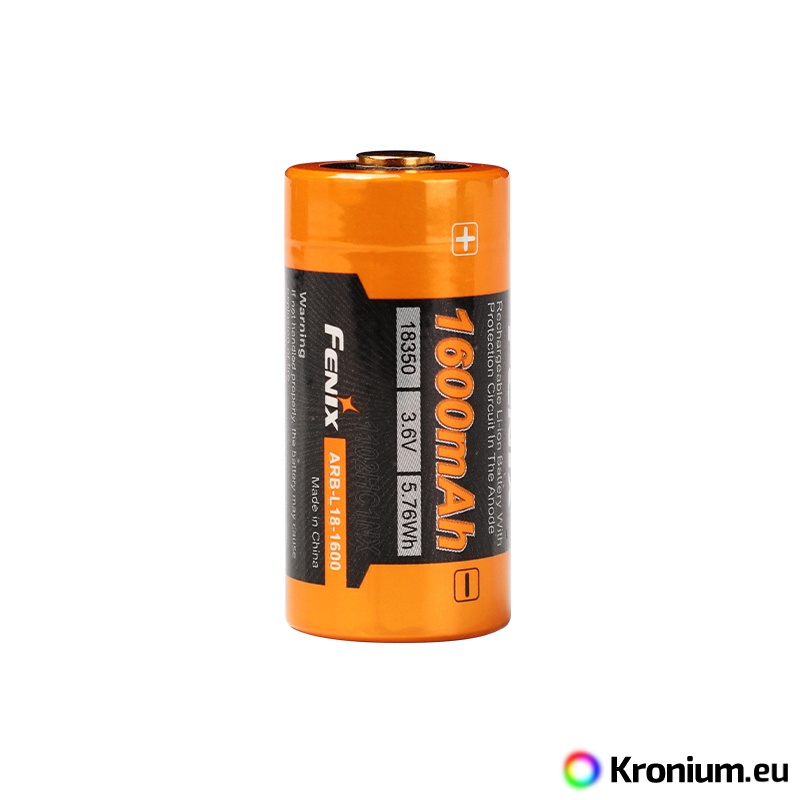 Rechargeable battery Fenix ARB-L18-1600 (18350) is suitable, for example, for Fenix TK05R, Fenix GL23R, Fenix GL19R V2.0 flashlights. Li-ion rechargeable batteries are characterized by a very high capacity, they do not suffer from the memory effect or self-discharge. Li-ion technology gives one of the best ratios of the amount of stored energy to the weight of the cell.