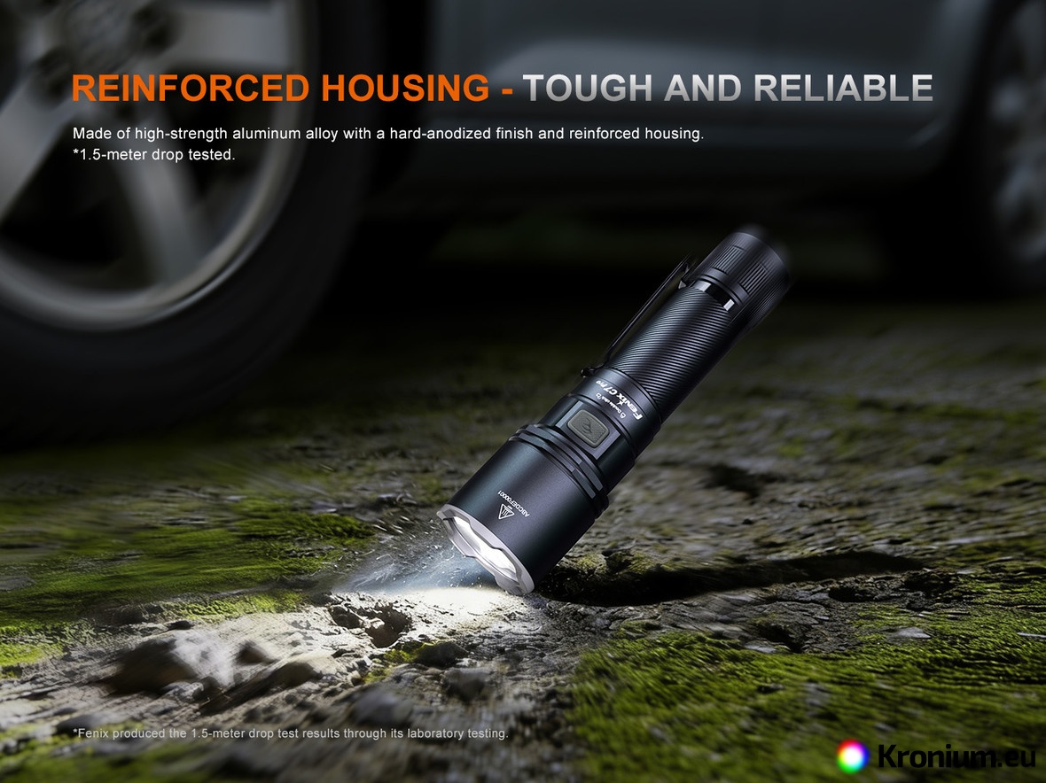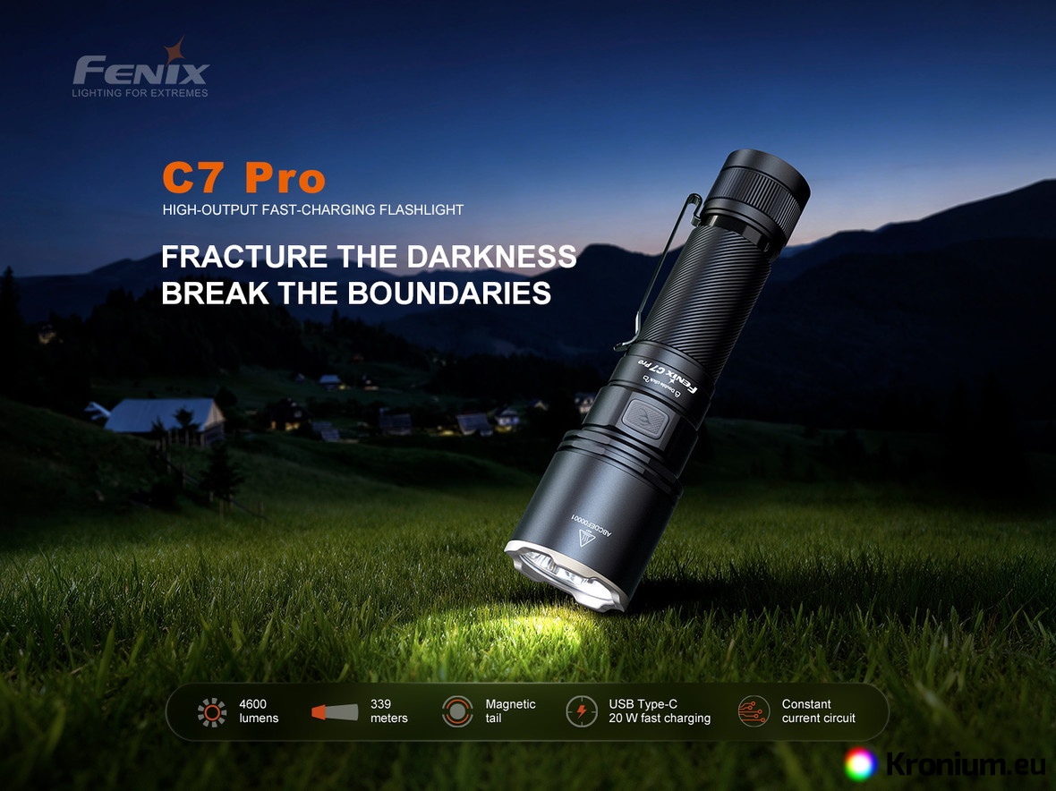 The Fenix C7 PRO is an uncompromising rechargeable flashlight designed for those who demand extreme performance and maximum reliability. It offers a stunning luminous output of up to 4600 lumens (ANSI) with an incredible beam distance of up to 339 meters. The heart of the flashlight is a premium 21700 Li-ion battery with a massive 5000 mAh capacity (included in the package), which you can charge conveniently and quickly directly in the flashlight via the modern USB-C port.