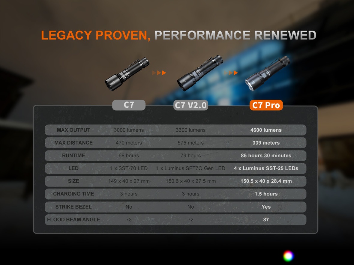 Fenix C7 PRO Flashlight Specifications