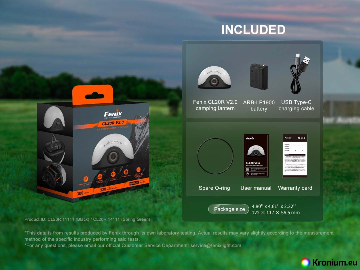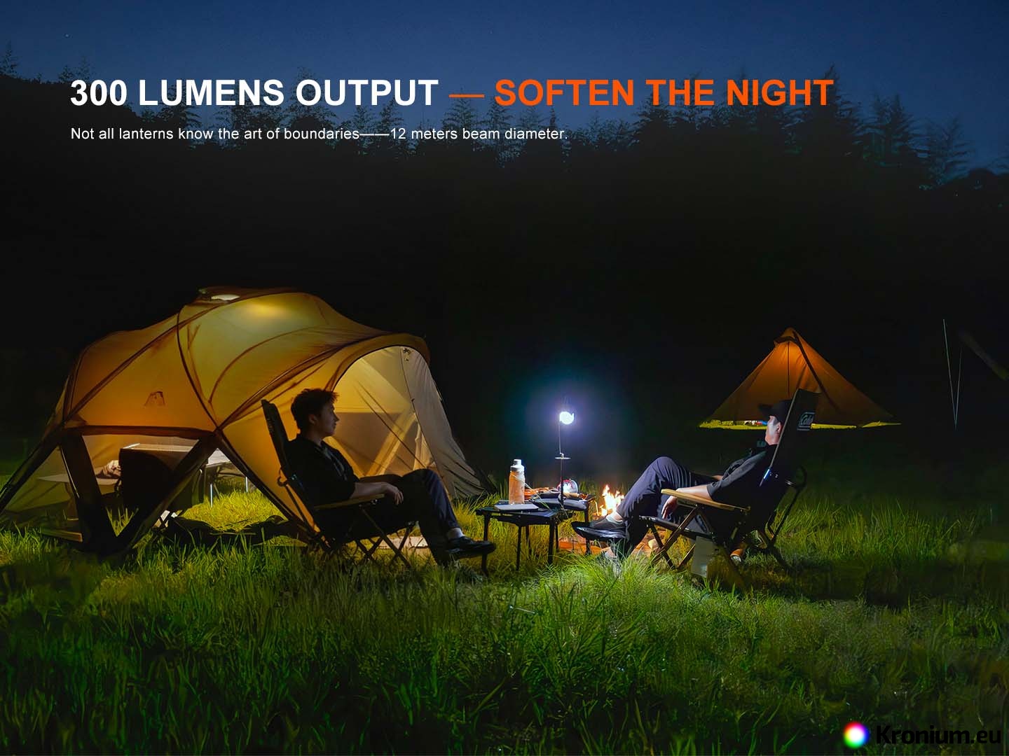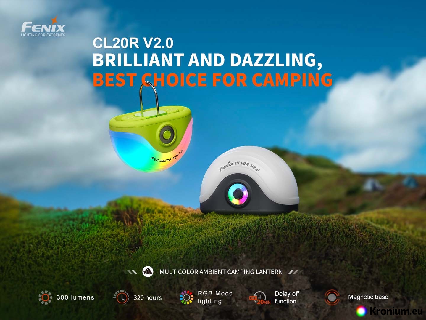 Looking for a reliable and versatile light for camping, fishing, or evenings on the patio? You've just found it. The Fenix CL20R V2.0 is a compact and powerful rechargeable camping lantern that you can use to light up a room, tent, or workspace. Twenty-seven high-brightness LEDs hidden under a hemispherical diffuser provide a light output of up to 300 lumens (ANSI) with a pleasant neutral tint of white light (3700 - 4200 K). The advantage of this tint is a more natural and high-contrast color rendering that is easy on the eyes. To create some atmosphere, the lantern is also equipped with twenty-four RGB LEDs for colorful lighting. It's powered by a replaceable Li-ion battery, the Fenix ARB-LP1900, with a 1900 mAh capacity, which is conveniently recharged via a modern USB-C port. In an emergency, it can be replaced with three standard AAA batteries. Thanks to its durable construction with an IP65 rating, it isn't afraid of the rain. The base is equipped with a folding hanging loop and a strong neodymium magnet, so you can easily attach it to a tent pole, a car hood, or any iron surface. Weighing just 122 grams, it's the ideal outdoor light for your travels.