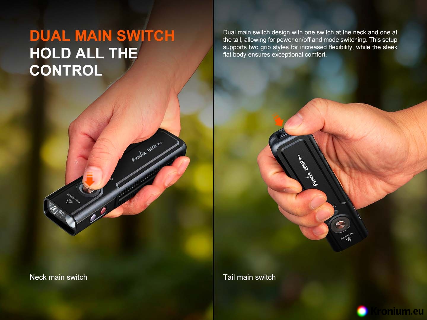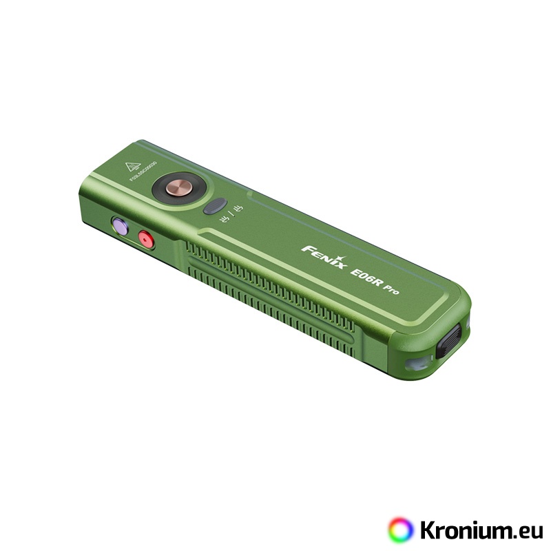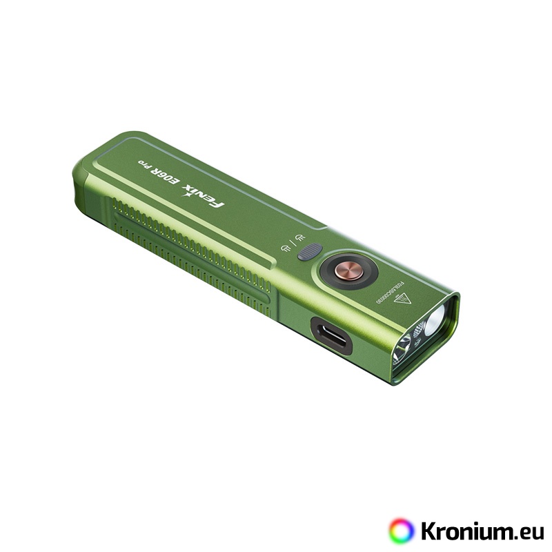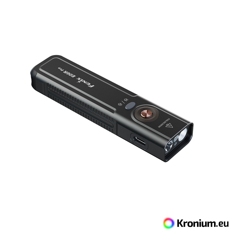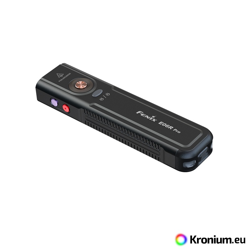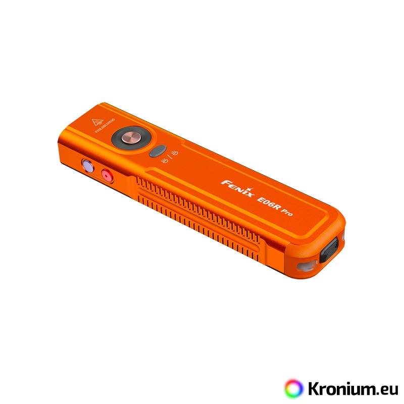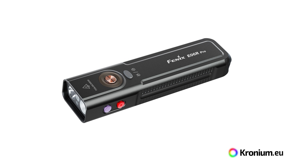 The Fenix E06R PRO is a powerful flat rechargeable flashlight that pushes the boundaries of pocket EDC models. Compared to its smaller variants (Fenix E06R and Fenix E03R V2.0), it offers not only multiples of higher output but also a unique combination of features including a strobe, ultraviolet light, laser pointer, and innovative control. Despite its compact flat design, which fits perfectly in a pocket, it offers a high luminous flux of up to 1600 lumens (ANSI) and a beam range of up to 160 meters. The flashlight is equipped with a pair of top-tier diodes (Luminus SST20 and SFT25), allowing you to switch between a cool spotlight and a neutral floodlight beam. Power is provided by a built-in Li-Pol battery with a high capacity of 1650 mAh, ensuring endurance of up to 111 hours in the energy-saving Moonlight mode. Charging is handled by a modern USB-C connector directly on the flashlight body. The Fenix E06R PRO features five white spotlight modes, five neutral floodlight modes, UV light with a wavelength of 365 nm and a power of 1300 mW, a red laser (pointer), and several modes of so-called Breathing light - lights around the switch button and in the tail of the flashlight with an output of 0.5 to 1 lumen, which you can use for discreet signaling or identifying the flashlight's location. It is controlled via a side button, a toggle switch for spotlight and floodlight, and a tactical switch in the tail. The flashlight comes with a sturdy clip, so you can attach it to a pocket or backpack strap. A battery level indicator in the button is also practical. The flashlight is great for EDC, and thanks to its flat shape, you can always have it with you without it getting in the way.