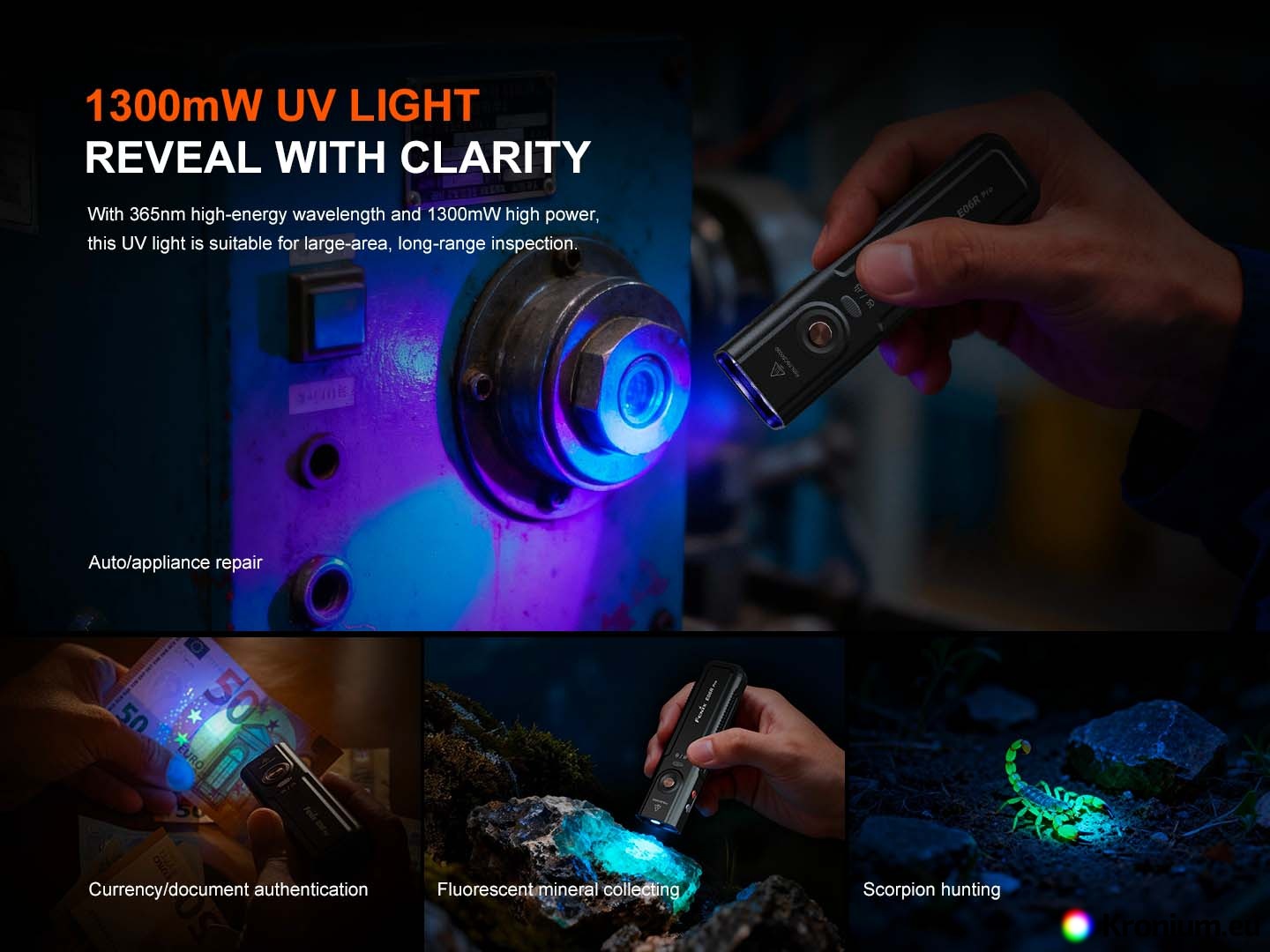 - Discover a hidden world with our guide to Fenix UV flashlights (here). We compare all current models from small EDC to professional extreme performance tools. Find out how ultraviolet light reveals invisible details and which flashlight is the right one for you.
