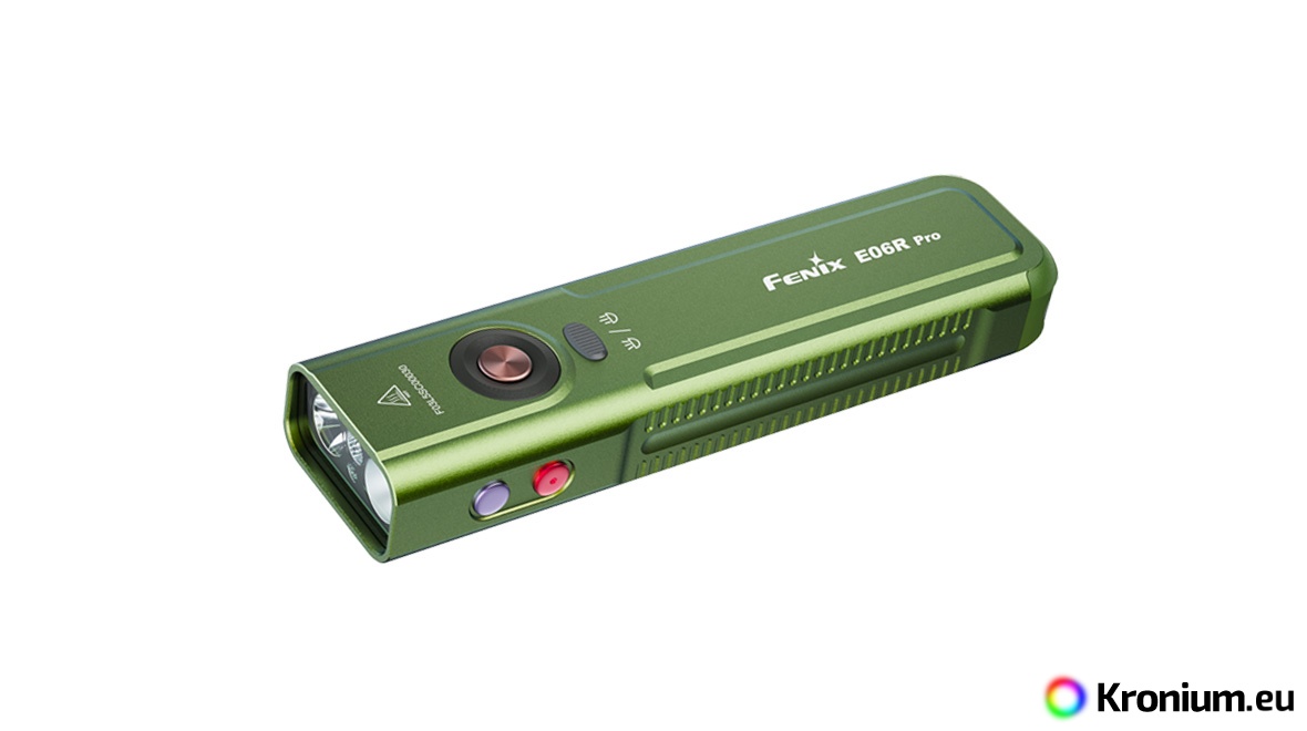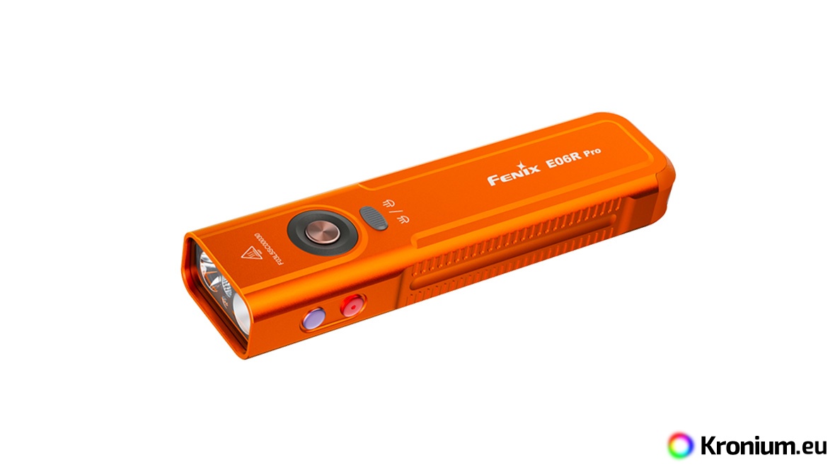 The Fenix E06R PRO is a powerful flat rechargeable flashlight that pushes the boundaries of pocket EDC models. Compared to its smaller variants (Fenix E06R and Fenix E03R V2.0), it offers not only multiples of higher output but also a unique combination of features including a strobe, ultraviolet light, laser pointer, and innovative control. Despite its compact flat design, which fits perfectly in a pocket, it offers a high luminous flux of up to 1600 lumens (ANSI) and a beam range of up to 160 meters. The flashlight is equipped with a pair of top-tier diodes (Luminus SST20 and SFT25), allowing you to switch between a cool spotlight and a neutral floodlight beam. Power is provided by a built-in Li-Pol battery with a high capacity of 1650 mAh, ensuring endurance of up to 111 hours in the energy-saving Moonlight mode. Charging is handled by a modern USB-C connector directly on the flashlight body. The Fenix E06R PRO features five white spotlight modes, five neutral floodlight modes, UV light with a wavelength of 365 nm and a power of 1300 mW, a red laser (pointer), and several modes of so-called Breathing light - lights around the switch button and in the tail of the flashlight with an output of 0.5 to 1 lumen, which you can use for discreet signaling or identifying the flashlight's location. It is controlled via a side button, a toggle switch for spotlight and floodlight, and a tactical switch in the tail. The flashlight comes with a sturdy clip, so you can attach it to a pocket or backpack strap. A battery level indicator in the button is also practical. The flashlight is great for EDC, and thanks to its flat shape, you can always have it with you without it getting in the way.