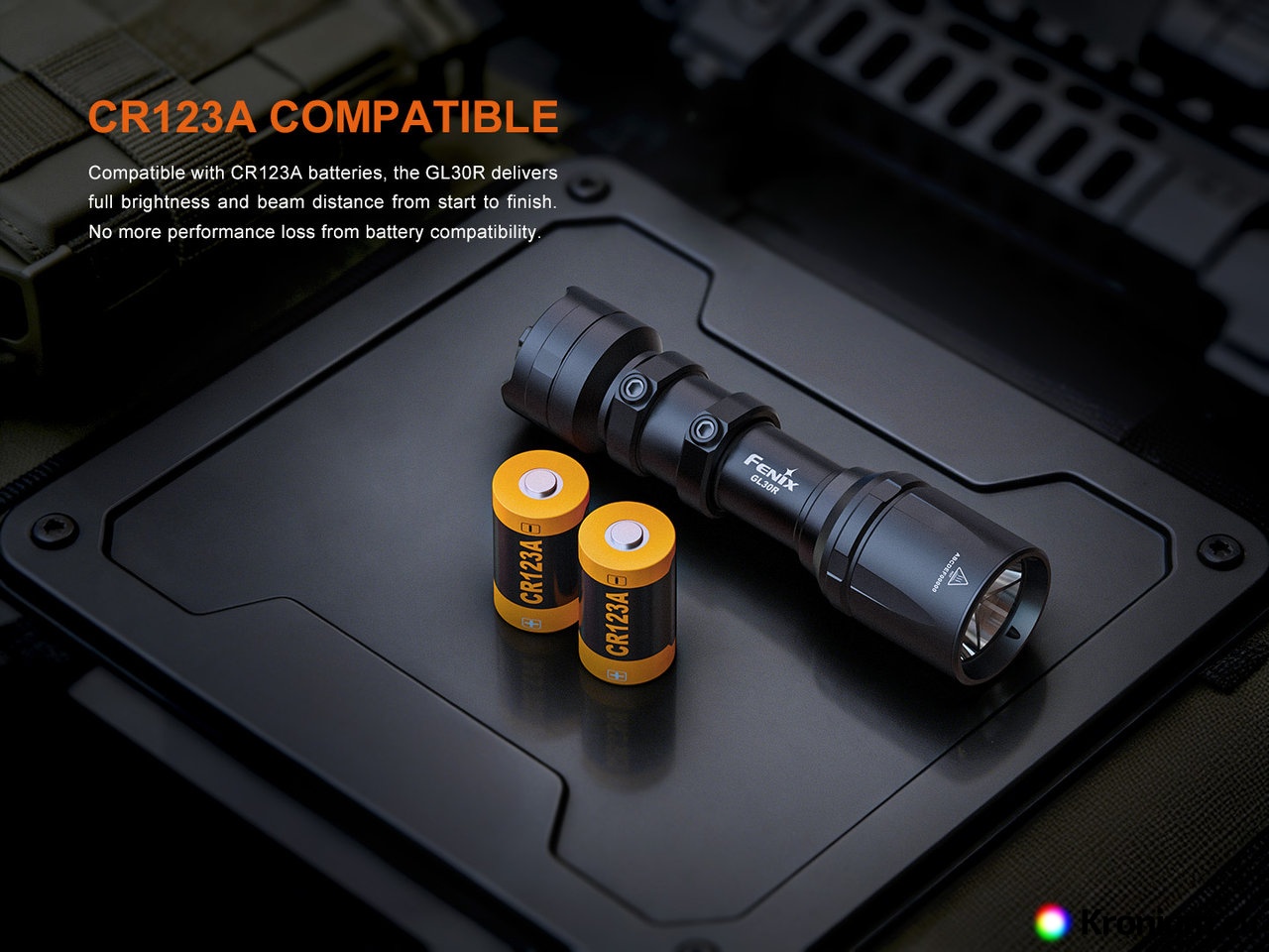 - Powered by one Fenix ARB-L18-3400 Li-ion battery (included). Alternatively, two 3.0V disposable CR123A batteries can be used.