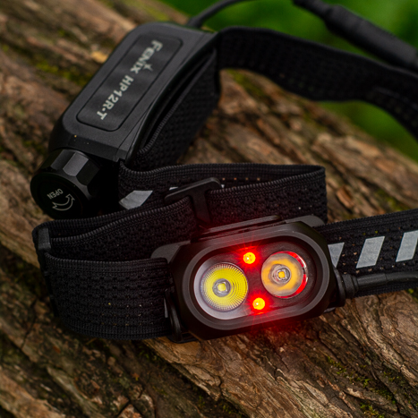 A new addition is the Fenix HP12R-T running headlamp, which is distinguished from other models with a 18650 battery by its separate battery case located on the back of the head. The entire headlamp weighs almost 200 grams, but thanks to the perfect weight distribution, it is a great option to have a larger battery without the problem of the greater weight on the forehead being a nuisance. Another advantage is the red flasher / light on the battery pack. It perfectly increases safety when running on roads and you don't need another flasher, or in combination with another flasher you will be even more visible to other road users (especially drivers of cars approaching you from behind). The high output of up to 1300 lumens with a beam distance of up to 200 meters also ensures that you will be able to see in any situation. In addition to the supplementary red light at the front and back, the headlamp is equipped with two reflectors with daylight white and a neutral light tint. You can combine both reflectors and turn them on simultaneously in 1300 and 70 lumen modes (turbo and low mode). The cooler reflector shines up to 1000 lumens on its own, and the warmer light reaches a maximum output of 500 lumens, although it has a slightly narrower light beam and, at the same output, a longer beam distance than the cooler light. This is a rather unusual configuration for Fenix, but for running and other sports activities, this solution is perfectly suitable and adds another choice of what suits whom. The wearing comfort is increased by a comfortable perforated strap with a tightening and loosening wheel, as the "-T" (trail) in the designation suggests. IP66 is a matter of course for the HP series, as is high durability, as with all Fenix products.