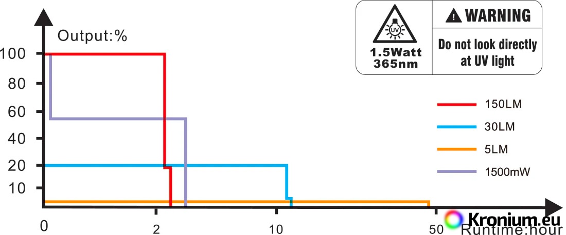 Memory for last set mode - when the white light is switched on, the lamp always switches to the last selected power mode.