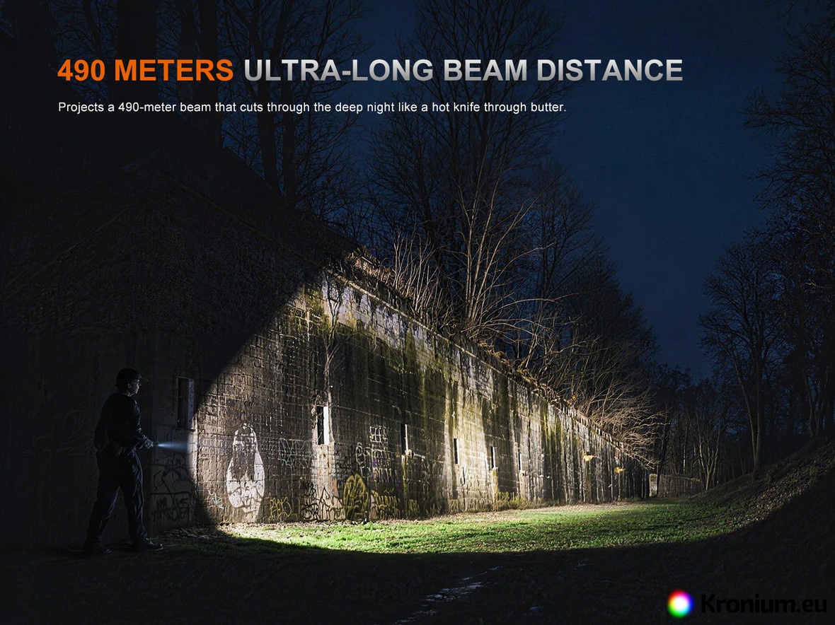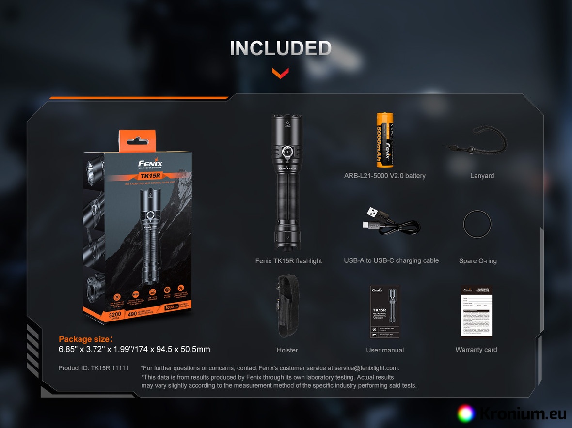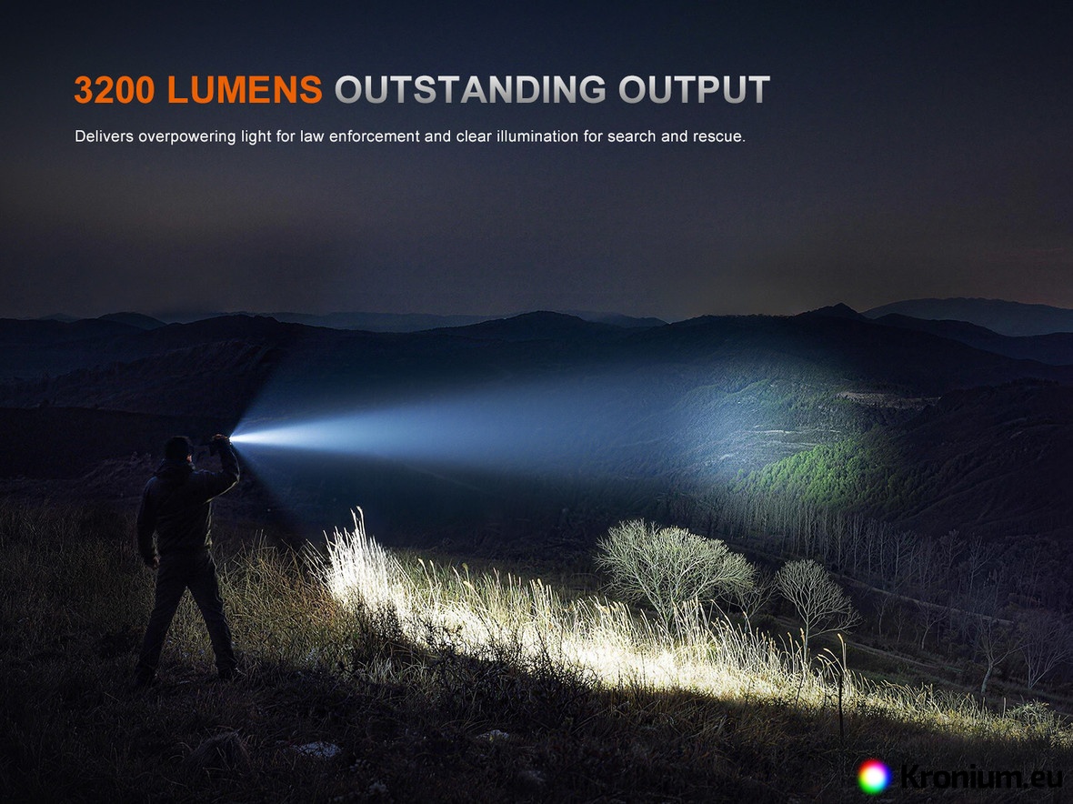 - Runtime is measured with a rechargeable 21700 Li-ion battery with a capacity of 5000 mAh (Fenix ARB-L21-5000 V2.0 is included).