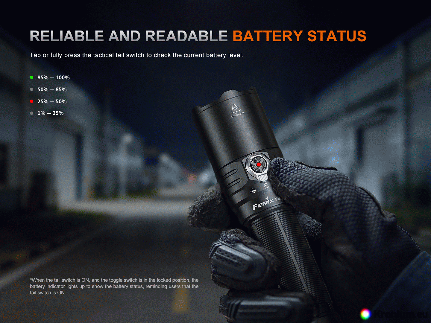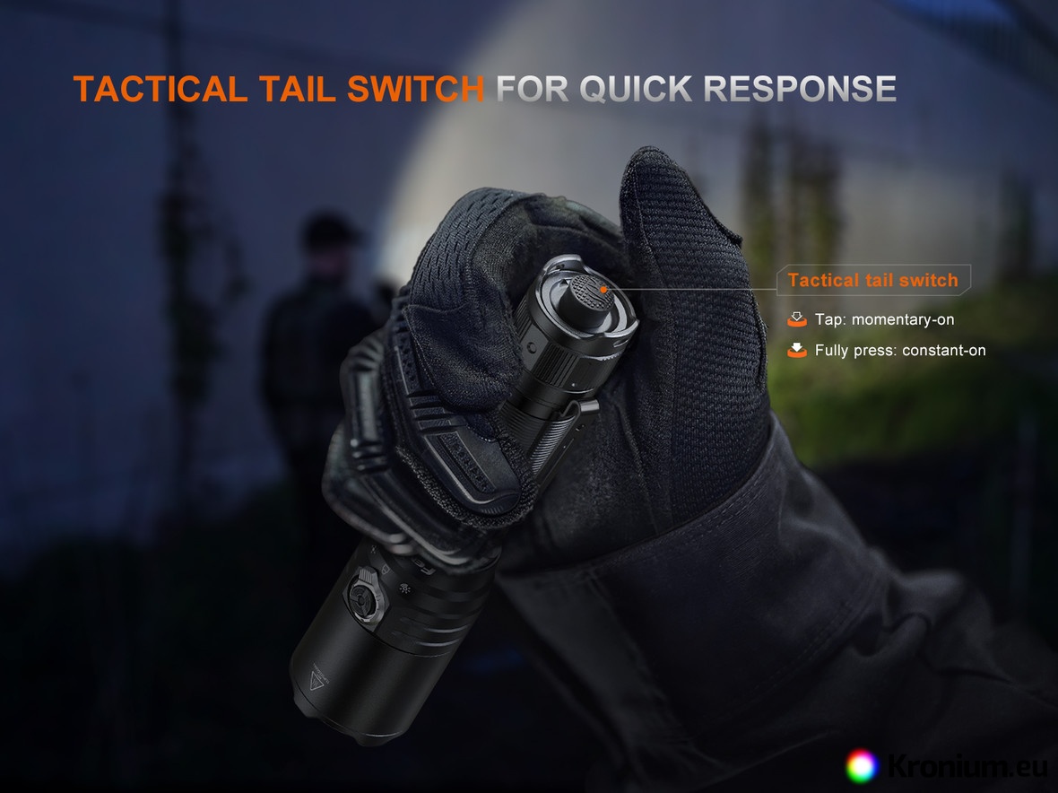 - Tactical tail switch for instant activation/deactivation and a side rotary switch with a functional button.