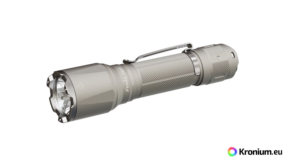 The powerful Fenix TK17 tactical flashlight offers a top light output of up to 3600 lumens (ANSI) and a beam distance of up to 330 meters. The flashlight is powered by a single 21700 6000 mAh Li-ion battery with a USB-C port and a powerbank function, allowing you to charge your phone or other electronics in an emergency. The battery provides power for up to 60 hours of illumination. Its very solid and waterproof design makes this tactical flashlight suitable for harsh outdoor conditions, professionals, armed forces, and hunting. The Fenix TK17 LED flashlight uses a dual tactical switch for faster and more reliable operation in crisis situations. For example, it can be quickly activated directly into Strobe mode or the highest output mode. The head of the flashlight features a striking bezel made of stainless steel, additionally equipped with three tungsten steel tips. Therefore, the flashlight can be effectively used to break glass in emergency situations or for self-defense.