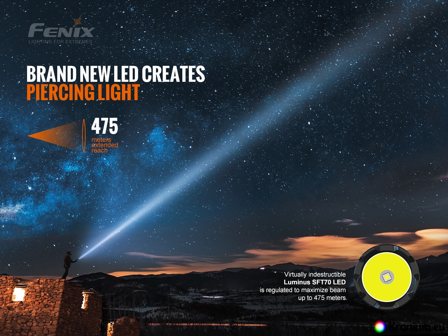 - Powerful Luminus SFT-70 LED with 50,000 hours lifetime is used.