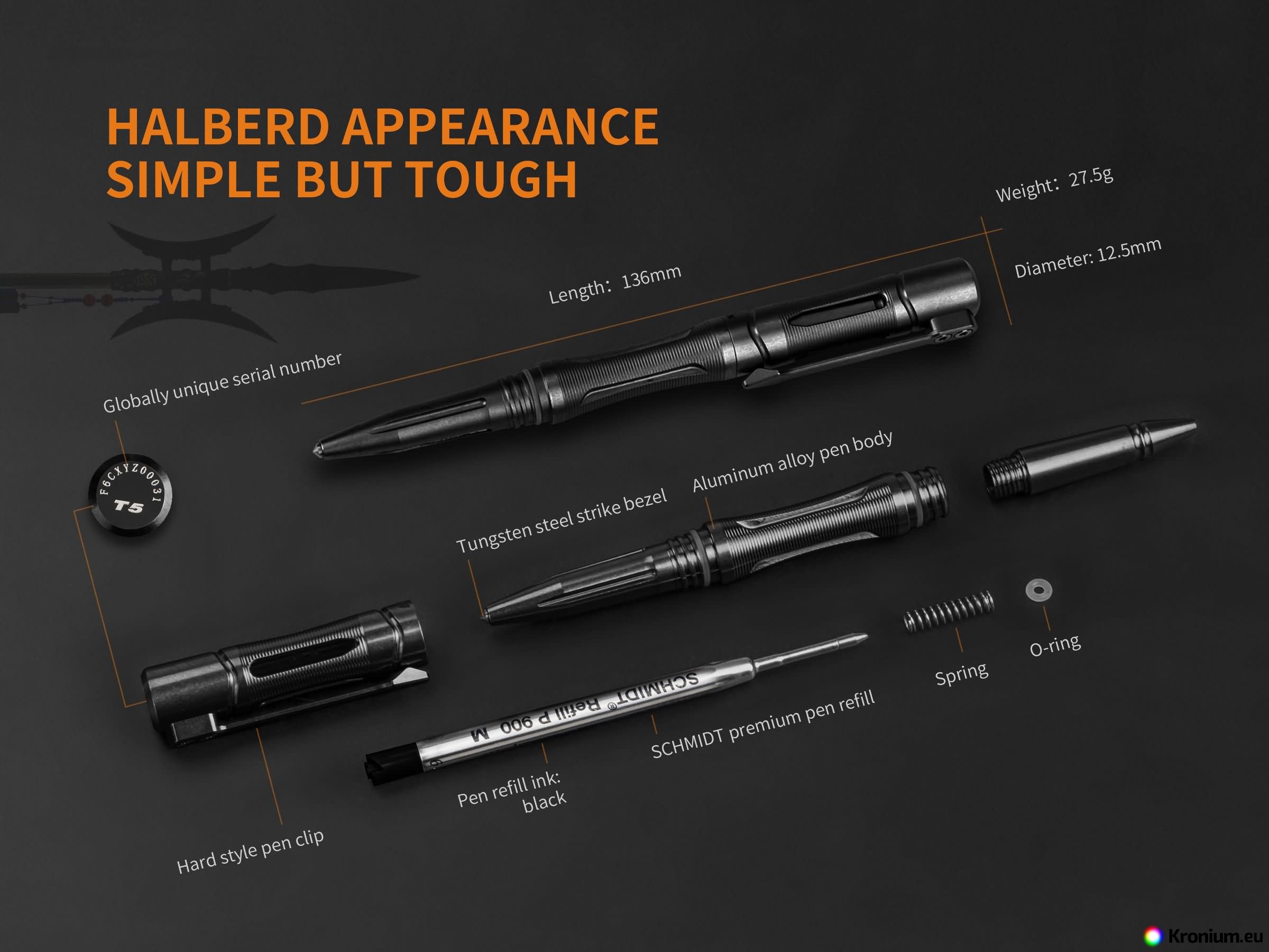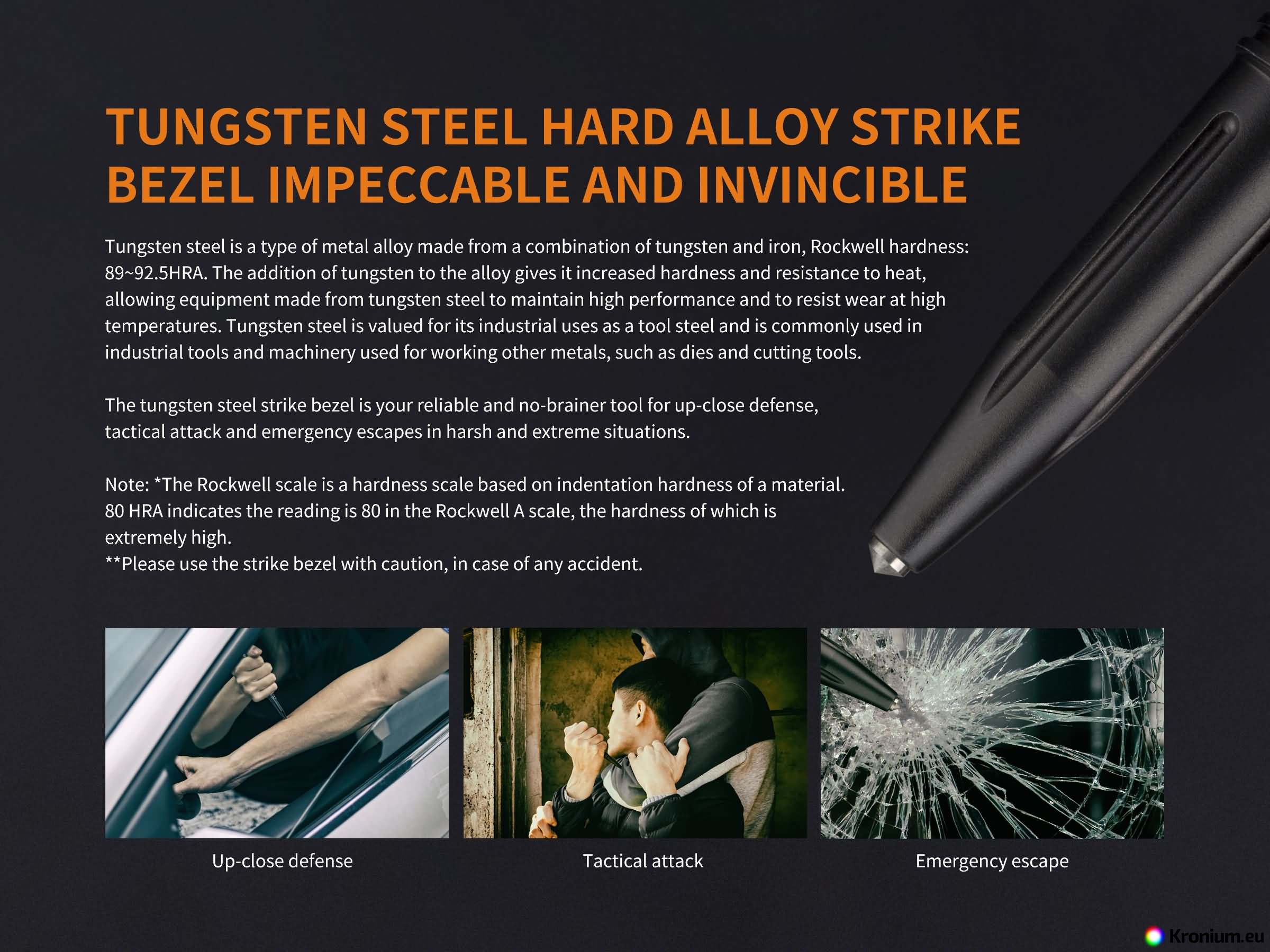 - Body of the flashlight made of aerospace hardened aluminum, the head of the flashlight is completed with striking rim in black color.