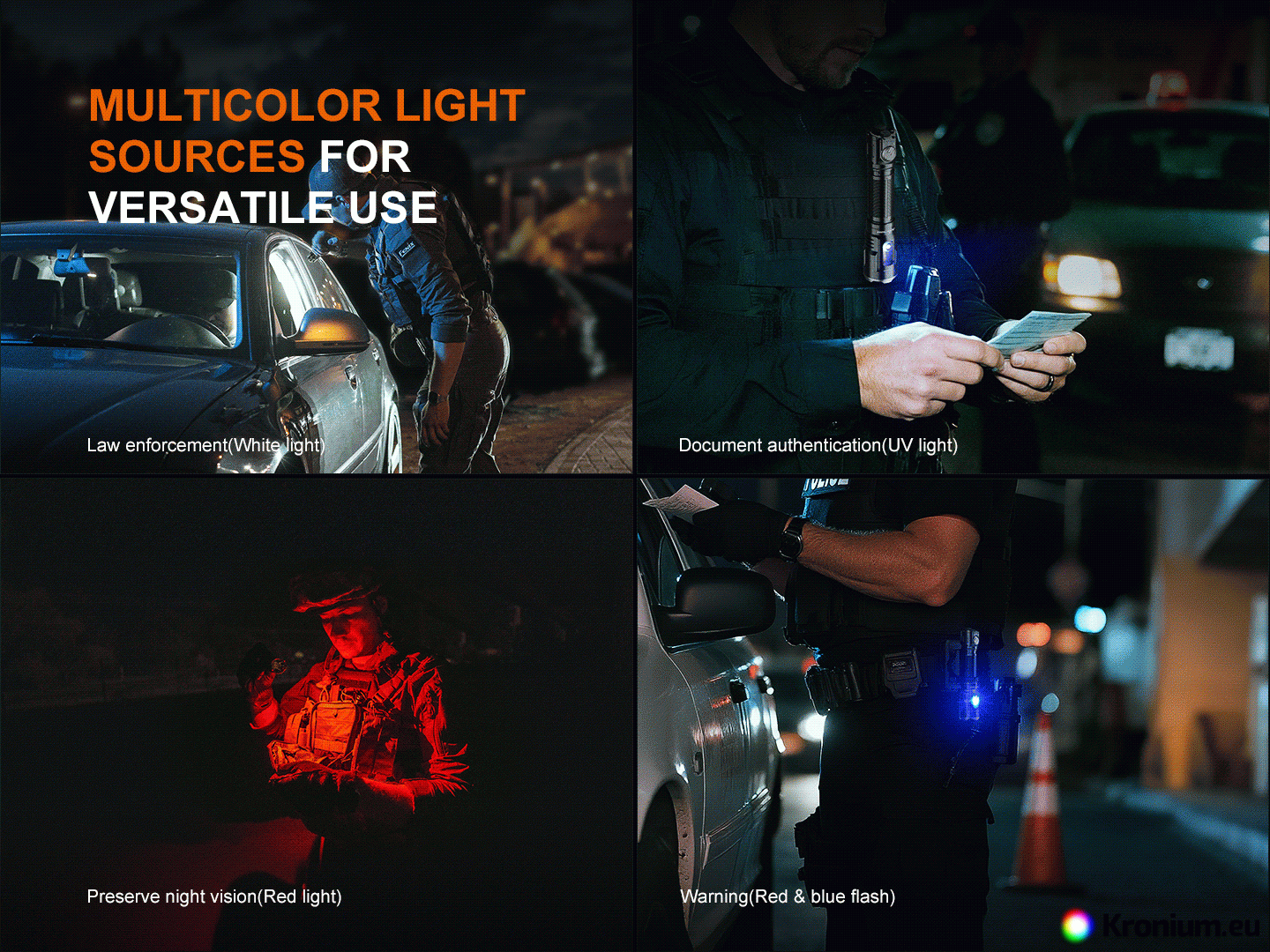 Thanks to its parameters, high durability, and police flashing function (red/blue), this flashlight is the perfect choice for police officers, rescue workers, firefighters, and security agencies. However, it will also find use among repairmen, technicians (thanks to the side work light) or demanding outdoor enthusiasts who require uncompromising quality.