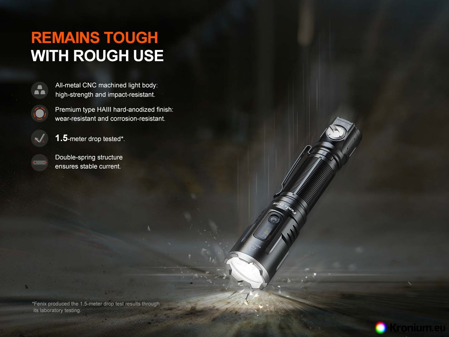 - Made of aerospace-grade hardened aluminum 6061-T6, the flashlight is impact-resistant to drops from 1 meter.