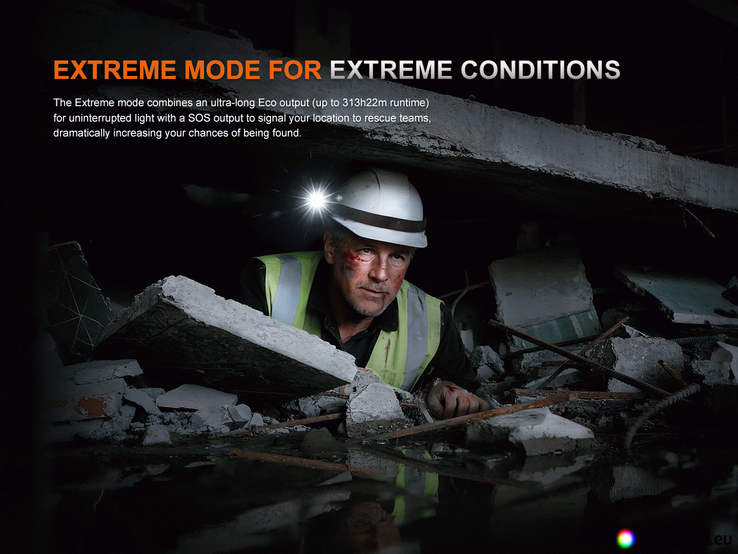 - The flashlight features a memory function and can be turned on in the last used mode, excluding the emergency modes (Eco and SOS).