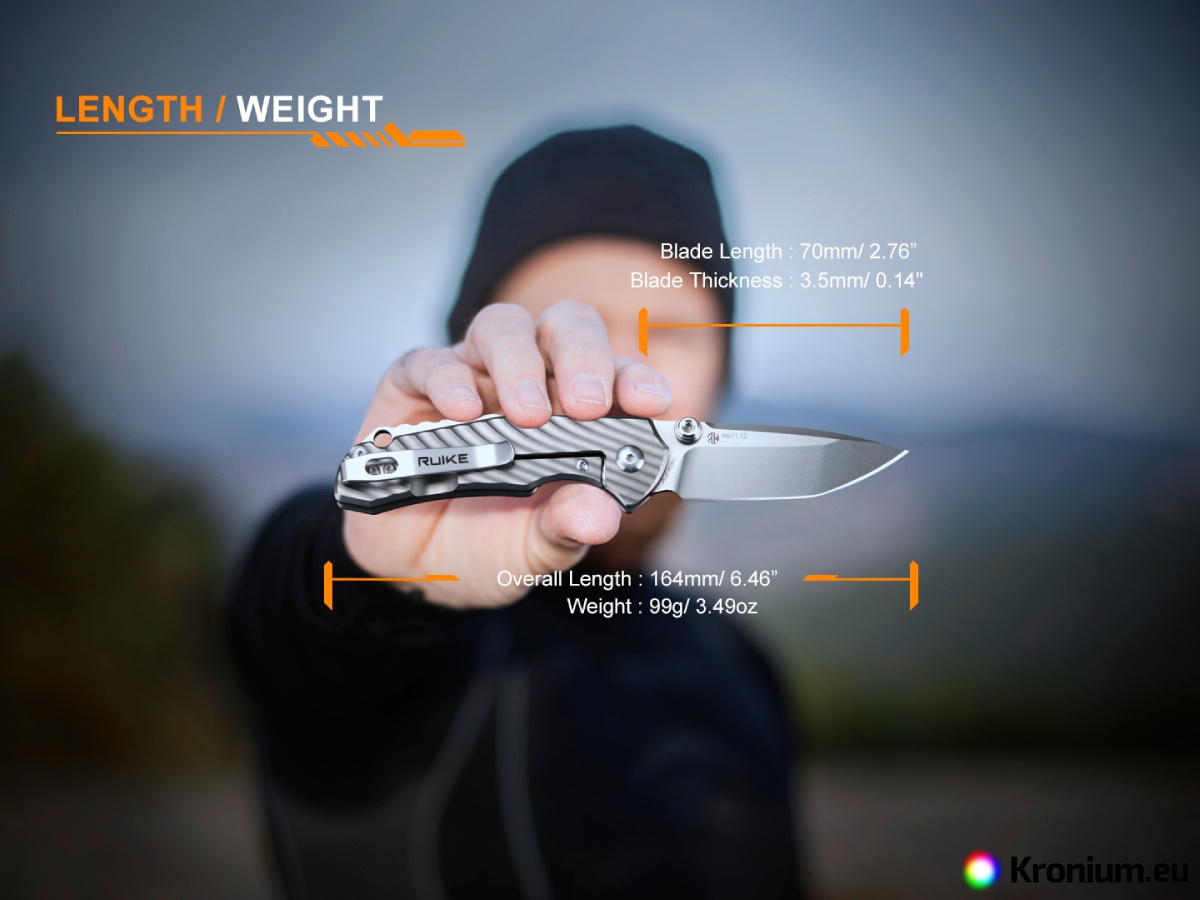 The Ruike M671-TZ compact closing knife is a luxurious titanium version of the popular P671-CB knife, which is suitable for both right- and left-handed users and can be opened with one hand. It opens simply with a thumb lever on either side of the blade. The knife is equipped with a frame lock to prevent accidental closing. The knife is equipped with a clip for attachment in a pocket and is ideal for everyday carry (EDC category).