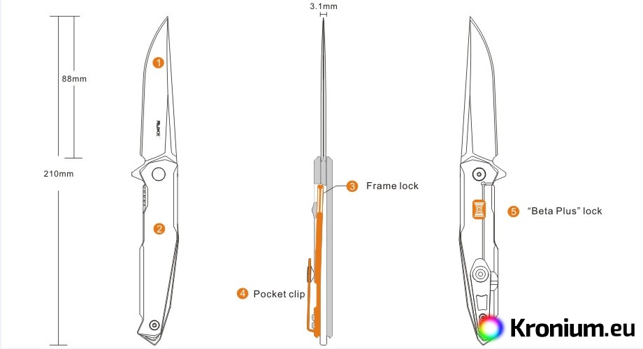 The compact Ruike P108-SF knife features a blade made of 3Cr14N stainless steel in a sandblasted finish. The blade is equipped with a flipper lever for quick and convenient opening. The knife is fitted with a frame lock against accidental closing, which can be secured with a beta lock. The knife is equipped with a clip for attachment in a pocket and is ideal for everyday carry (EDC category).